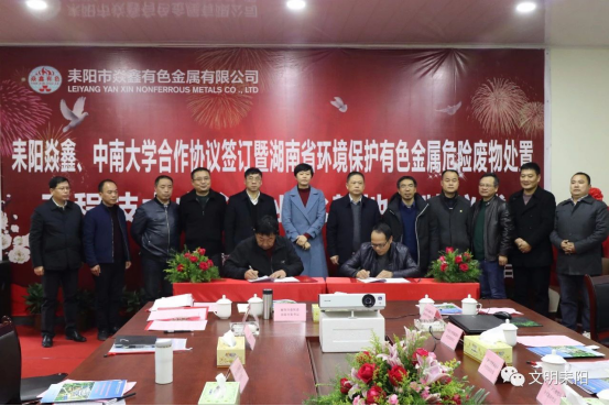 12月27日下午,耒陽市焱鑫有色金屬有限公司、中南大學合作協(xié)議簽訂暨湖南省環(huán)境保護有色金屬危險廢物處置工程技術(shù)中心產(chǎn)業(yè)化基地揭牌儀式順利舉行。衡陽市委常委、耒陽市委書記羅瓊,中南大學黨委常委、副校長郭學益為基地揭牌并講話。副市長陳寧主持儀式。